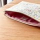 使用这块布料制作的宽 20 厘米的化妆包。附有侧边厚度,能收纳许多物品。内里布也一应俱全,并加入柔软衬里,结构扎实。