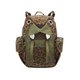 背包上的一对金属眼睛,和采用反光物料制造的亮白獠牙及两侧爪子最为抢眼 。 索绳袋口主袋身,可供足够空间携带物品,两侧的魔术贴侧袋与主袋之空间,方便摆放水壶随时轻易取出,另有拉链袋设于前腹。虎爪型拉牌成另一亮点,是专为此大猫背包设计。