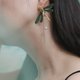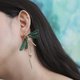Pinkoi限定色 草绿 田园植物系 蜻蜓 单支耳环 耳夹 低敏耳环