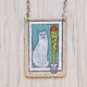 Enamel necklace, based on copper. Unique piece, with a particular design and graphics. This is a nice jewelry. The graphics inspired by home and cat. The graphics painted with vitreous enamel and used sgraffito technics (scratch work)