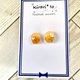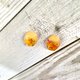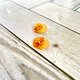 矿物形状的可爱耳环,有黄色的花和暖色的干花围成。用树脂溶液仔细地完成。