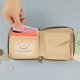 对开式拉链短夹,收纳钞票、票卡、证件、零钱,保护内容物。