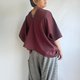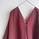 这是一件采用和服布料纵向裁切,呈现简约方形轮廓的套头上衣。使用大量的布料,造就宽松的版型。领口为略深的 V 领,内衬柔软布料。