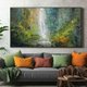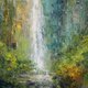 当代藏家不再仅收藏“图像”,而是收藏“可感知的能量场”。《瀑语》正是这样一件作品——中央的白色水柱并非留白,而是由多层半透明色域堆叠出的“光之通道”;两侧深绿与赭石岩壁则以刮刀制造肌理起伏,形成视觉上的呼吸节奏。画面无声,却有清晰的声频韵律。