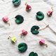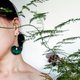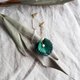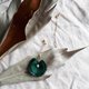 - 两片不同深浅的圆扇蒲葵重叠摆放 近看叶子尖尖的地方很像比✌ 看了会笑出来 搭配天然珍珠像露珠从叶盘滑落