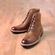 军靴添一分英伦风格,皮胶绳系带交错更显质感,粗旷中不失细节讲究。帅气靴型直挺,微翘的楦头设计