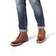 鞋面手工擦旧渐层色泽与大胆尝试异材质皮革拼接缔造层次感与独特性,再以细点雕花陪衬,Man度百分的