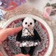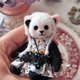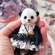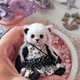 这是一只戴着粉红色猫耳朵帽的小熊猫,由优质德国黏胶制成。用开口销完全固定,因此可移动。熊无法自己站立。