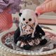 配件方面,我为她织了一顶猫耳朵帽子,手工缝制了一件漂亮的裙子,还给她挂了一个黑色蝇耳吊坠。