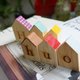 将小木块一个个的切出外形,屋顶上我们剪贴上碎皮,