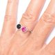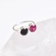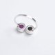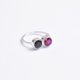 一款由散发着黝黑光泽的神秘天然石黑碧玺,以及红粉色红宝石所制成的双宝石银戒指。