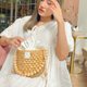 "PINEAPPLE SUNDAE Edition" (Handwoven Water Hyacinth Bag) 100% Handmade water Hyacinth woven bag from 100% Thai local group. This is the only bucket style bag with critically impressive details. From the pattern on the side of the bag that looks like pineapple fruit, wooden rounded beads handle, and the lining fabric that connects to the rope that you can pull from each side to close the bag, plus a wooden rounded bead at the end of each side of the rope to make it even more fabulous. This bag can also carries a lot of items better than it look. There are 2 colors of the handles ; Nature or White