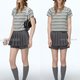 Polyester 綠灰調混紡條紋毛巾觸感高彈針織面料。