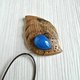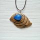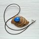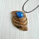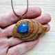 Bright and attractive wooden carved pendant made of rowan wood inlaid with blue chalcedony. Dimensions: the pendant is 6 x 4 cm, the lace is 44 cm long.
