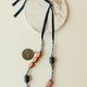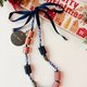 Scheletro的阿拉伯几何设计项链是属于阿拉伯几何珠系列中的长型项链,它混合了不同形状和大小的珠子,这些珠子用深蓝色缎带编织在一起。在不对称的设计中展现一种流行时尚穿戴的动态美学。喜欢组合性商品的朋友,欢迎选购搭配的项链及手链。