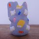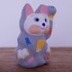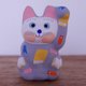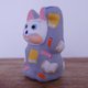 It is a cute handmade beckoning cat. The left hand invites people such as friends and customers.