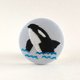 以刺绣呈现虎鲸在海中悠游的模样。因为非常喜爱又大又可爱的虎鲸,所以尝试了刺绣创作。在水族馆里跳跃的虎鲸,那份魄力真是惊人。让人想再去见它们一次。