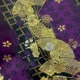 以日式典雅织锦缎为基底,细致扇面与樱花图样交错交织,金线随光流转,呈现低调却不失奢华的美感。紫黑渐层如夜幕铺展,仿佛映照皇室梦境。