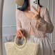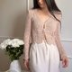 蕾丝针织上衣,可订制。图片所示的咖啡色 S 尺寸现货可立即出货。