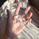 搭配了九个不同形状色系的图案,简单的贴合在手机壳上。