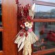 花材:干燥果实、手工银莲花、水引线平梅、毛笔花、稻穗、喷金尤加利叶的、莲蓬等等