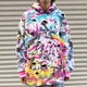 这款独特的连帽衫,将扎染的连帽衫在前襟及袖子部分做了刷破设计。