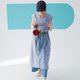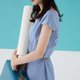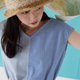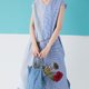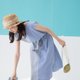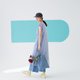 - 前后都V领的设计微微露出锁骨, 比较有女人味的版型, 用直细条和横细条对称拼接, 虽然都是蓝色系但不同的蓝有层次感, 搭袖包住上手臂让不敢露手臂的人也可以轻松穿搭, 衣摆两侧都有开岔处理, 腰间有缎带可做不同的穿搭变化, 也可搭配裤子穿搭。