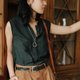 無袖的小立領襯衫,保留了襯衫的那份正式感,又多了一分灑脫感在裏邊。