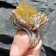 萤石原矿重38.6公克,长4厘米,宽4厘米,厚2厘米,纯银手工制作,国际戒围为15号(美国戒围9号),欢迎试戴。