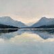 静湖》收录于“自然诗境系列”,以柔和冷调描绘群山与湖水在清晨相遇的那一刻。远方山峦层层推叠,雾气在山与天空之间轻轻晕染,平静湖面则像一面镜子,将天光与山影完整倒映。厚涂笔触留下细致的纹理,让画面在简约构图之中仍保有丰富的层次与手感。