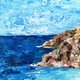 大海風景畫 原創油畫。 旅行愛好者的禮物。 油畫、帆布、紙板 25x25 厘米(9.8x9.8 英寸) 無框的 藝術品將裝在加固的紙板箱中,非常耐用,可消除運輸過程中的損壞。 完全跟踪。