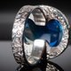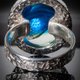 这款独特戒指融合了琥珀的深邃蓝韵与银饰的璀璨光泽。每件作品皆经手工精心打造,细节处尽显匠心。银质碎片点缀其间,流转细腻光芒,令戒指更显非凡。无论是作为赠礼或为自己添置优雅饰品皆为上选。