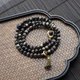 天然银曜石多圈手链,天然银曜石圆珠,搭配925银镶天眼隔珠、925银跑环等,搭配天然墨鱼玉圆珠,金属配件皆为925银材质。