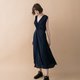 充满欧洲古典气息的一款洋装,绑带系前系后的位置变换可随心情调整,不过份优雅,微开的裙摆展露性感。终极显瘦款