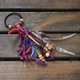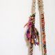 - A handmade rubber decoration with feathers, wood beads, tearing cloth, silk thread, knitted thread and leather strap.