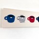 I sewed coffee canvas motifs of different colors on white canvas fabric.