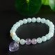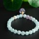 由天然海蓝宝冰润冰淇淋体天蓝色圆珠做手链主体,色泽是温暖柔和的蓝,均匀自然,浅浅淡淡,粉粉润润,对光看,冰润的珠体里,有冰花冰裂一般的浅蓝棉絮冰裂,像海里的泡沫,如天空的云朵,有的像星光点点。对光转动圆珠,可以看到或白或金的荧光,如同透过阳光照射的冰面而来。搭配天然巴西半透紫水晶圆珠,天然淡水珍珠,天然荧石郁金香雕刻件,天然近净体紫水晶小圆珠,整体清浅冰沁,温柔缱绻,如海里翻涌的浪花。