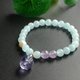 因材料天然性,珠子每一批次都会有轻微色泽变化。珠子在不同光线下呈现出的色泽也有细微不同。天然海蓝宝冰润冰淇淋体天蓝色圆珠,温暖柔和的蓝,搭配半透体巴西紫水晶圆珠,浅紫色萤石郁金香,天然淡水珍珠,温温柔柔,轻轻浅浅的色泽。冰冰凉凉的触感。如海里泛起的涟漪,如涟漪里盛开的花朵。