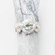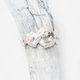 The snow-white rings with a woven dragon and leaves, It looks as enchanted and covered frost. The green amethyst in the center is transparent like ice and has a delicate greenish tint like the northern lights or coniferous forest covered with snow. Three small white water pearls decorates this set.