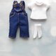 娃娃服饰。适用于迷你娃娃的丹宁吊带裤
