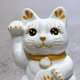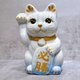 日本清水烧招财猫 花结晶 青白 必胜 右