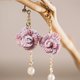 【钩织玫瑰淡水珍珠耳环】