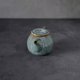 以细腻的藕青釉色为主调,淡雅的青色仿佛晨曦中泛起的清澈湖水。釉面上洒落的金色点缀,如同阳光洒在水面,闪烁着微光,给予整件作品一种静谧而神秘的美感。