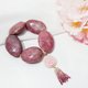 主饰**女皇贝玫瑰**、红粉色**碧玺**流苏,女皇贝高**瓷度**、富贵大器,碧玺颗颗色彩冰润、净体无瑕、火彩闪现,整体富贵大器,是**喜爱玫瑰石的藏友们值得收藏的臻品^^**。