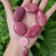 **玫瑰石(蔷薇辉石)**为硕大滚石,能见玫瑰石独有**艳粉、粉紫色,与玉化晶质交织独特纹理**,上手**宛若花苞在手腕绽放**,温润雍容优雅^^