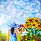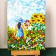 女孩和野花的图片尺寸为 15 x 21 厘米。图片写在厚纸板上。 一个女孩和向日葵的风景是用画笔和调色刀,粗笔画的。 一张明亮的照片将是一份美妙难忘的礼物。 我非常安全地包装我所有的画作,并附上追踪号码。
