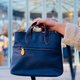 设计简约,细节低调,例如木质拉链头、带有橘色滚边的手把,以及同色系的橘色内衬。