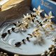 以此为灵感,以黑白水晶树酯花形,搭配流光粼粼琉璃水晶,并大胆将整体设计