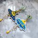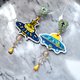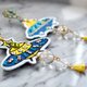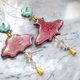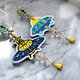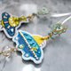 蓝色刺绣太空船缀水晶宝石装饰心型图案耳环