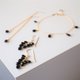 Raggedly shaped pierced earrings with three black spinels swaying vertically.